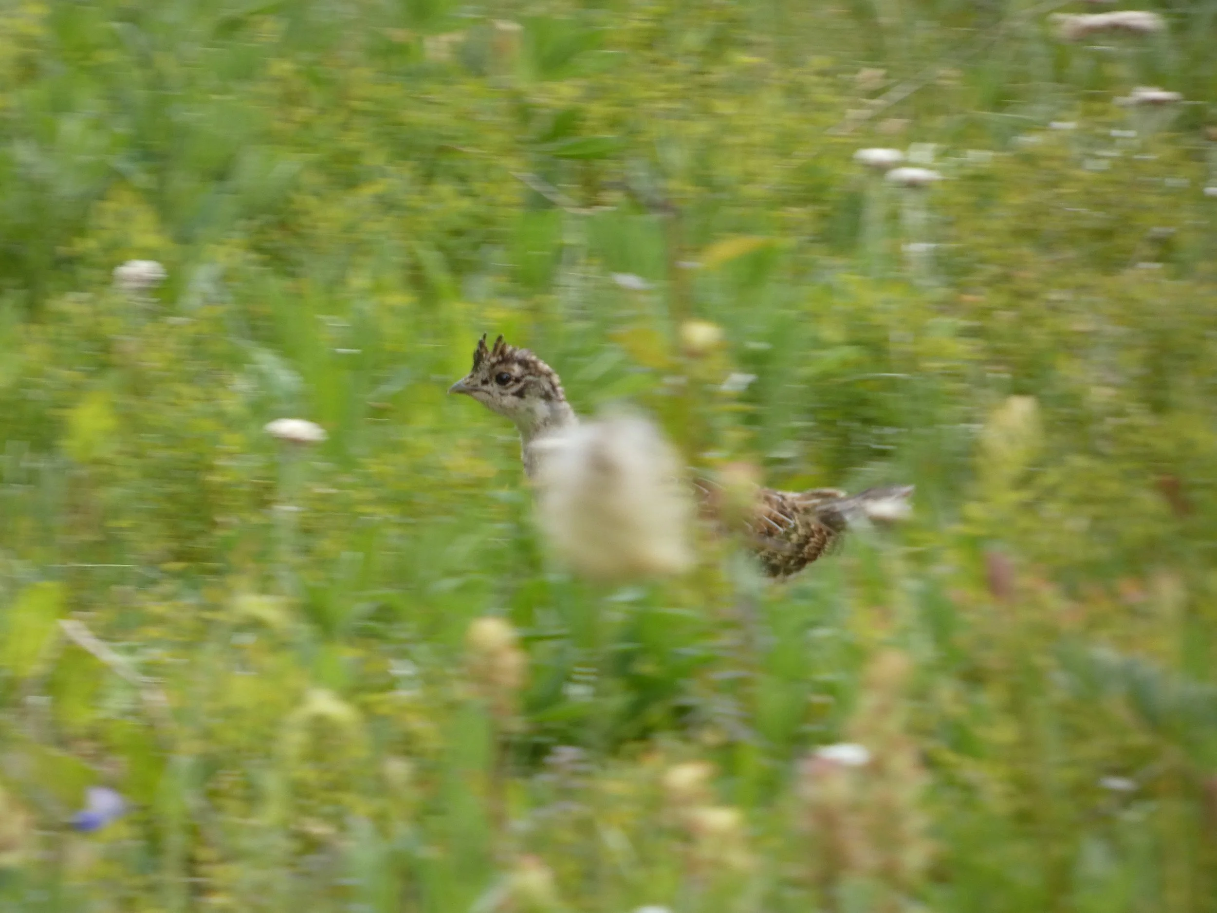 1 of 3 Sooty Grouse chicks on the Heather Trail at Manning Park - Photo: Leo J.