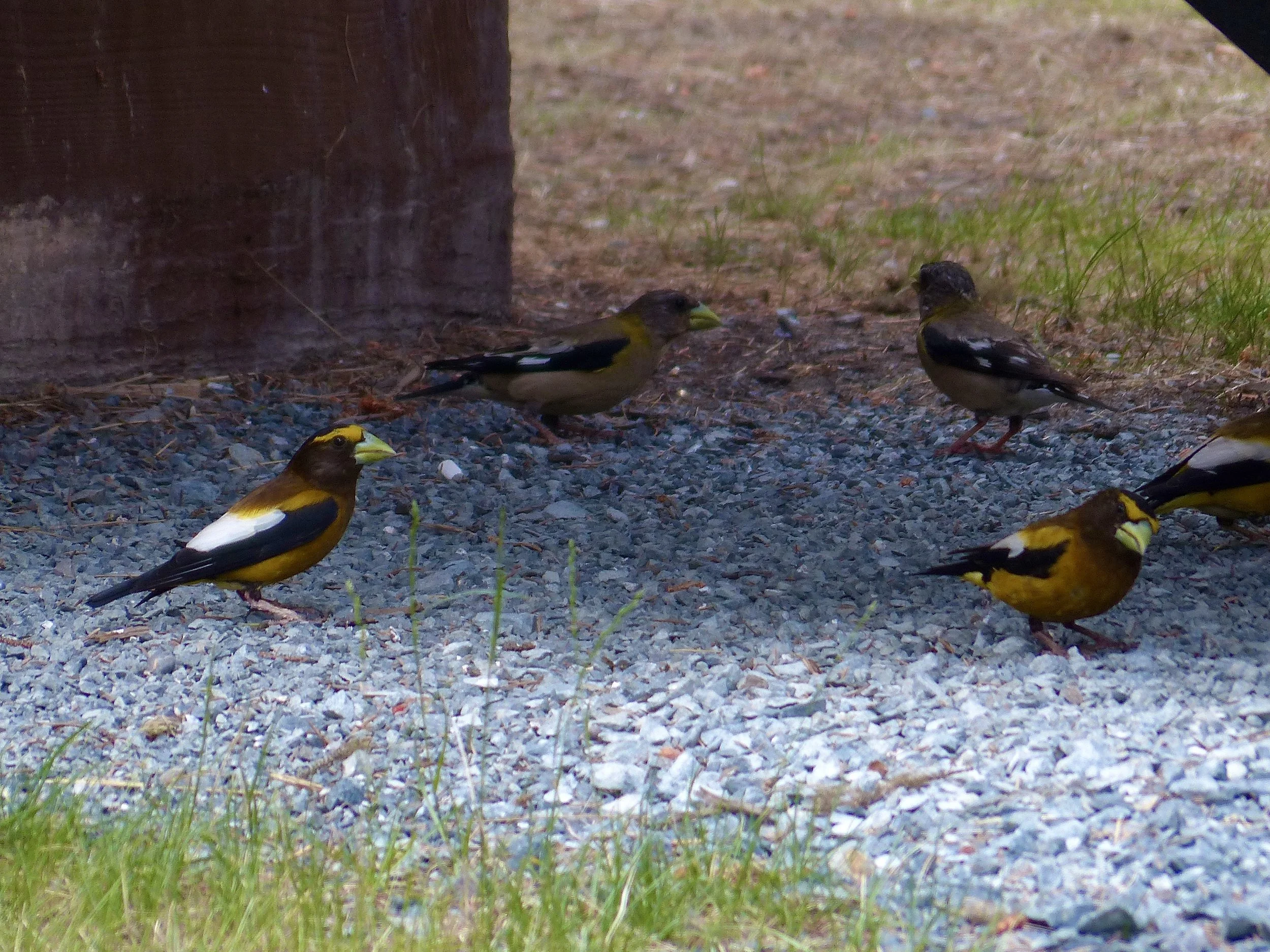 Evening Grosbeaks at Lightning Lake at E.C. Manning Park, BC. - Photo: Raymond Liu